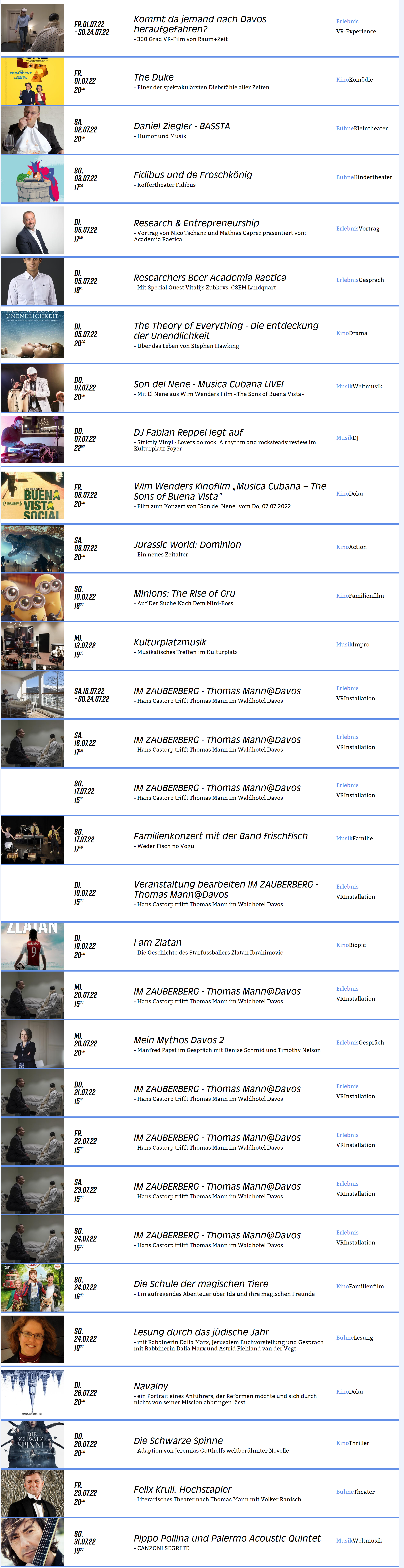 Erhalten Sie hier einen Überblick zu den regelmässigen Terminen in der KW 4 im Casino Davos: